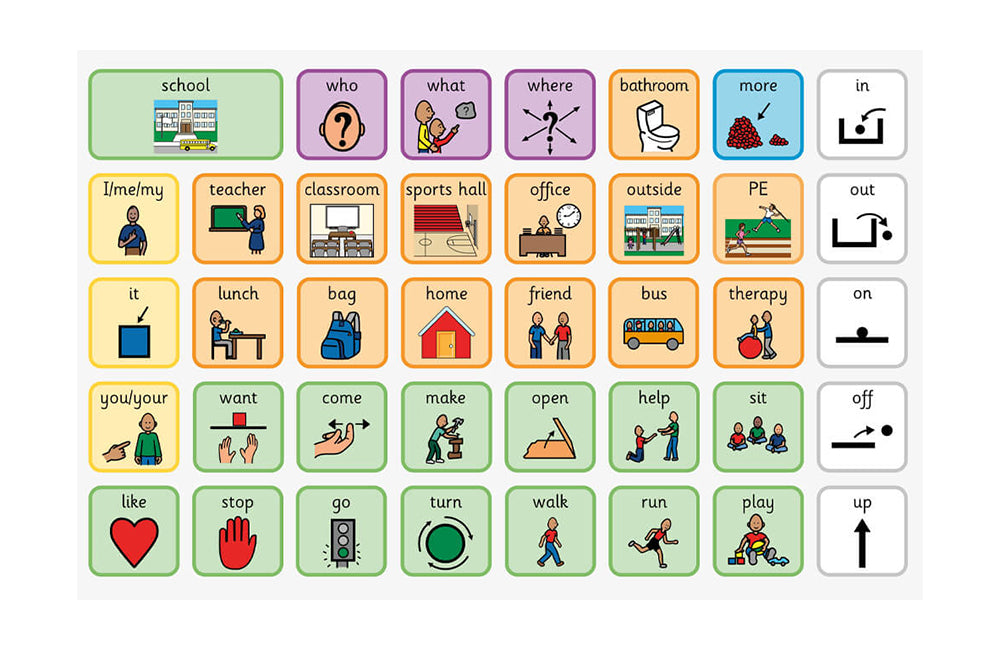 By applying consistent colours to specific word types, communication boards become easier to learn, more intuitive to use, and more supportive of language development.